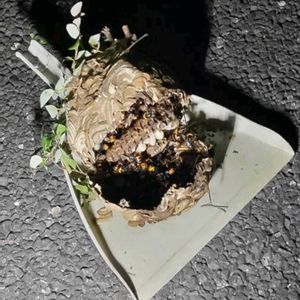 ミッドナイトにこんばんわ✨️ ただいま、業者の方に スズメバチの巣、取ってもらいました🤣💕 直径20㌢強🫨🫨🫨 日曜日に旦那が生垣の剪定をしてたら、蜂がブワッと出てきて、命からがら逃げてきました 市役所に連絡して、業者を呼んでもらい 本日20:30処理してもらいました✨️ 何故夜かって? 夜の方が蜂がみんなお家に帰ってきてるため、一網打尽に出来るそうです よくテレビで蜂バスターとかやってますが…… あんなのないない 夜にちょちょいで処理できますよと蜂取り業者の方が言ってました あれはテレビ用にド派手な演出らしい あんなに蜂飛ばしちゃダメですよ と言ってました🤣 蜂の巣の入り口から殺虫剤をシュバ〜と掛けて 数分置いて、枝ごと蜂の巣を取り出し、写真撮影し、ゴミ袋へ入れて……ものの10分程度で終了 もろもろで18000円でした🙂↕️ 市の補助金が5000円出るので、13000円ですな?