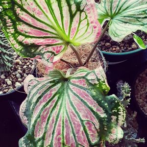 Caladium 'Pink Symphony' カラジューム、ピンクシンフォニー お久しぶりのpic(笑) 母氏それなりに植活頑張ってました。 癒しはここに…^_^