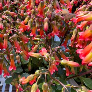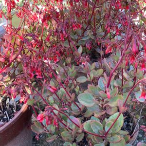 🍀🍀我が家の小さな温室のお花です🌺🌹🌺🌹🌺🍀🍀☘️🌱☘️🌱 🍀🍀カランコエ ‘ミラベラ‘ ❤️❤️🧡🧡🧡 カランコエ ‘ミラベラ’ 学名 :Kalanchoe ‘Mirabella’ 性状 :多年草/常緑/多肉性 大きさ :高さ:30〜40cm/葉長:3~6cm/ 花長:30~40mm 形態 :茎は斜上または匍匐し、やや分枝する。葉は明るい緑色で肉厚で、先がやや尖った卵形〜楕円形で、全縁またはごく浅い粗い鋸歯があり、対生する。冬〜春頃、茎頂に、花序を作り、赤や濃紅色、サーモンピンク色などの筒状の花を横向き〜下向きにつける。 原産地 種間交雑種。 交配親は、「カランコエ・マンギニー K. manginii」〔マダガスカル原産〕となにか(不明)。 生育 :耐寒温度は5℃程度。 今年はまだ全部咲かないです🌺🌹🌺 満開になると豪華でとっても綺麗です🍀☘️♪(*^^)o∀*∀o(^^*)♪🌺🌸🌺🍀🍀🍀☘️🌱