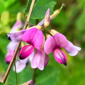 公園の中にひっそり咲く山萩🩷 夏の始めに咲いていたミヤギノハギは、花も多くつき全体にボリューミーで力強い姿だったけど、この山萩は華奢で繊細な雰囲気 いかにも野草って感じで好きです💓