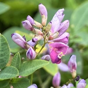 ヤマハギ 🌱マメ科 ハギ属 ✽高さが50cm〜2mになる落葉半低木 ✽葉は3出複葉で小葉は広楕円形、頂小葉が少し大きい ✽蝶形花が葉腋から出る花序に総状につく ✽がく筒は4裂し、裂片は細い三角状 よく見かける様になりました♪💜