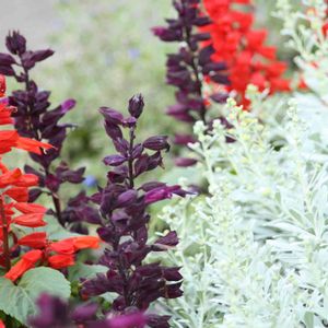 サルビアといえば、鮮やかな赤色がスタンダードですが、最近ダークな紫色のサルビアが増えてきました。 秋に似合う大人色💜 私はこの色が好きです🥰