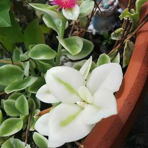 ほのかに ピンク✨ 植物全部室内ですが 今日から 少しだけ 又 暖かくなるみたい❣️ 今週は 母親が 遊びに来ていて 土曜日に帰宅するので なんの 植物持ってくーー⁇ っと 聞いたら ハートホヤさんてーーー 💦 まだ 増えてないから お盆までに 何とかするー。 て事で 春に咲く イースターカクタスと デンマークカクタスの白と サクラランのホヤさん ちょっぴり分けて あげる事に しました( ◠‿◠ ) やはり 多肉には 興味が なさそう💦 お花の 話 沢山出来たから 良かったヾ(๑╹◡╹)ノ"