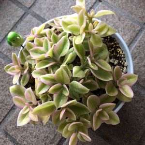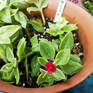 葉が鮫肌のようにデコボコしていて 太陽が反射すると ラメに見えます 正式名称はアプテニアで 和名は花蔓草です 斑入りは花蔓草錦、または白覆輪花蔓草🌿 斑入りじゃない方 普通のベビサンの方が強健で 2~3倍の速さで増えますよ~(*≧∀≦)