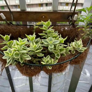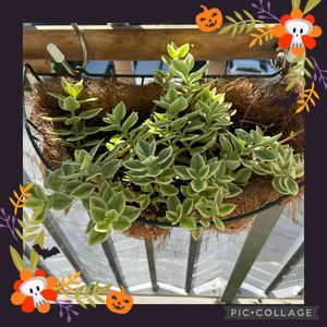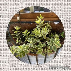 吊り鉢に植えたのだけ、爆発的に大きく育った!! 🍂斑入りベビーサンローズ アプテニア属 元株は、100均缶に収まってるのに 余裕のある場所なら、どんどん大きくなるんだなぁ😅💦