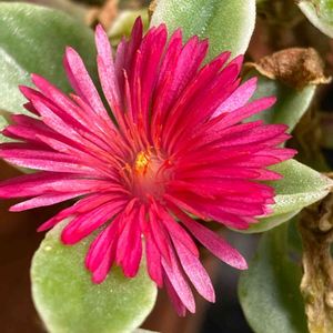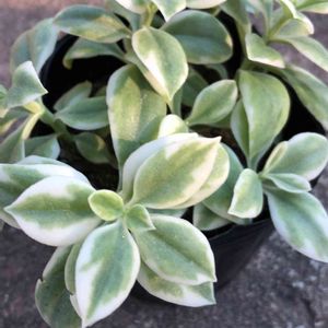 購入時、名前が付いてなかったのですが、斑入りの ベビーサンローズ🌸と教えていただきました💞 マツバギクに似たお花が咲くようです。 実はなかなかお花が咲かないことから、咲いたのを見れると幸運なことから、幸運の花とされているそうです🎶 お花咲くといいな〜💕