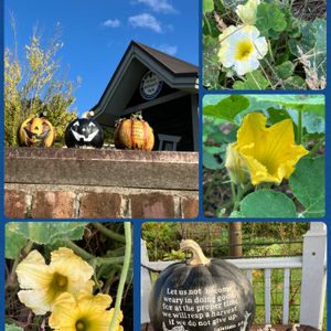 🖤○︎o。空と植物。o○︎🧡 (*^∇︎^)ノ゚・*:.。.☆︎ハッピィハロウィン☆︎.。.:*・゜🎃 🍀GS『今日のお花』カボチャ♡ 🎃①②ともハロウィンコラージュ♪ 😈おもちゃかぼちゃが3個〜フェイクかぼちゃが1個🎃 👻セイヨウニンジンボクのスワッグもスパイシーな香りがハロウィンにぴったり(m▼︎w▼︎)m[☆︎・゚:*