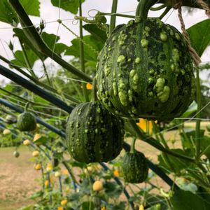こんばんは 今日の収穫 おもちゃカボチャ🎃🎃🎃 種まきして、育ててみました。 観賞用です。 食べられないらしいですね。 食用カボチャ🎃は、たくさん作っているんです。