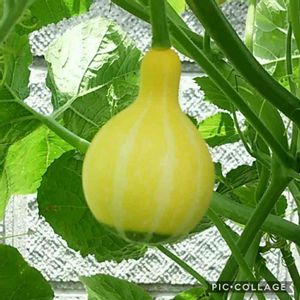 🌿🍀おもちゃかぼちゃ🍀🌿 先日投稿したおもちゃかぼちゃの実が大きくなりました❢❣ 受粉してから12日しか経っていないのにもうすでに8cmもあります 実はこの子、家庭菜園のキュウリの隣に植わっております キュウリ用の肥料がめっちゃ効いて絶賛成長中❢❣ この子が1番花でしたが、その後も続々と実がなっていて、受粉したもの、これからのもの、合わせて30個以上あるかも? どこまで大きくなるのか見守ります☺