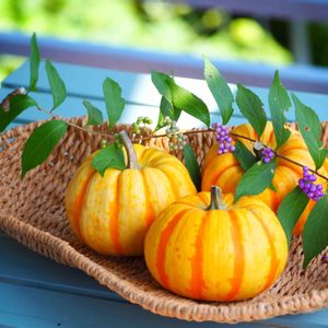 おもちゃかぼちゃと コムラサキシキブをカゴに入れたら テラスが秋色になりました🍁🎃💜