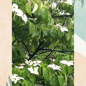 ヤマボウシꕤ*。゚ ご近所に綺麗に咲いてる 初夏を代表する花木♡ 開花を田植えの目安に… もう直ぐ 美しい緑が風にソヨソヨ ♫♡•*¨*•.¸¸🍃♪♡•*¨*•.¸