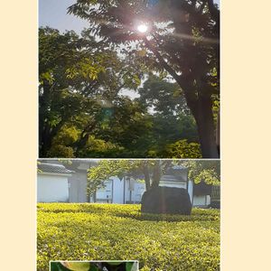 今朝の散歩 🌄 朝日を浴びて笹の朝露が キラキラ✨輝き 可愛らしい♡ 幸せな一時でした♡