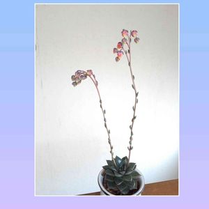 (๑´ლ`๑) フフッ 🍑に似たピンクのお花 多肉のお花は開花までが 長〜〜いです。 これ以上延びると 写せへん😂🤣😱 今日はピンクの日なので …💦何も関係ないけど😄