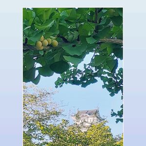 おはようさん😄 お城と銀杏のコラボです‼️ 昨日の木とは別です…💦 お天気も良いので早く熟するのでは😄😱