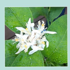 レモンの花 𓂃𓂂𖡼.𖤣𖥧𓈒◌܀𖥧𖧧 ˒˒. 白いお花が可愛らしいです…♡ 今年2度目のお花です♡ 🍋に成るかなぁ〜♡