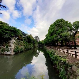 今朝の散歩道♡ お城の中濠沿いにぐる〜っとまわって歩くと お城🏯が正面に見えるベンチは必ず知らない おじさんが座ってる…💦 少し歩くと🚶お城が見えなくなってしまう🤣 でも、この場所✌😄 今朝は青空と雲のコントラストが👍💕😊 好きな場所です♡