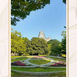 国宝 姫路城 水彩画の様なお城♡ 木々の間に見えるお城♡ 空のブルーが綺麗です♡ 何も加工していませんよ 綺麗なお城の虜です♡ 「住めば都」 …一寸!拝借させて頂きました🤭