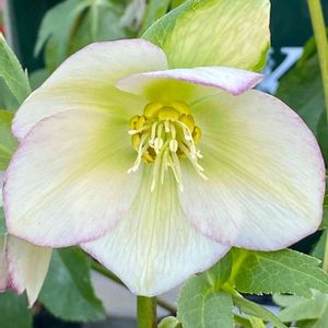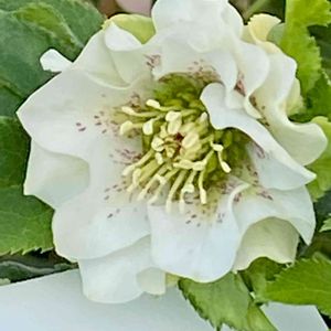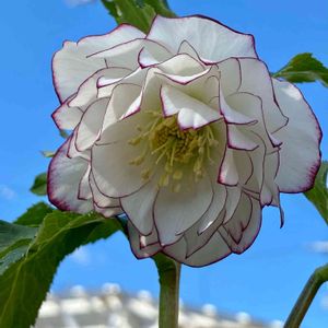 ダブル・ホワイト・ピコティーの クリスマスローズ🤍💖🌿 ピンクの縁どりが 鮮やかで可愛い😊