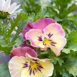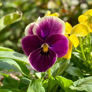 ビオラ リトルコニー💜💛 所々 葉っぱが斑入りになってる🌿😯