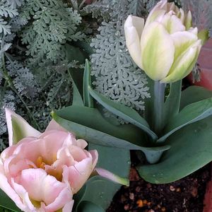 ミニチューリップ フォックストロット💗 咲きはじめました( *´︶`*) なんとも愛くるしい なに~この色の変化 淡いパステル好きには (⑉• •⑉)❤︎ドキドキ😍