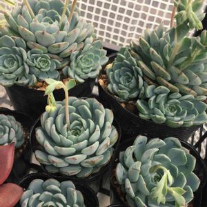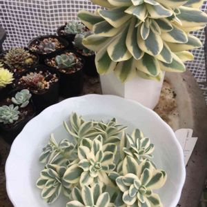 ものすご〜くデッカちゃんの 「ラウィータ」と「コロラータ」 入荷しました♡♡♡ 直径15cm近くあります(≧∇≦) 存在感たっぷり♡パステルなお色もなんともいえず…可愛い♡ 美人さんです〜〜♡♡♡ 1個づつは持ち帰り葉挿ししてみようかな? 葉っぱもものすご〜く大きいので 群生お子様になるかも〜〜(≧∇≦)