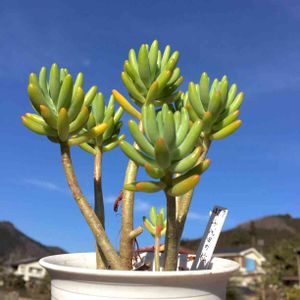 今日は雲ひとつない良い天気♡ 風もそよ風露天組の多肉ちゃん達も 気持ち良さそうです(^ν^) 花芽がいっぱいの「ジョアンダニエル」 花芽に付いてる葉っぱも大きくて立派です。 どんなお花だった……? 忘れちゃった(笑) 地味だけど子株が結構できるお利口さん 今もおかーさんの脇に1つ赤ちゃんいます♡♡♡