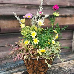 好きな色合いで花束みたいな寄せ植えにしました😊ぎゅうぎゅうです。