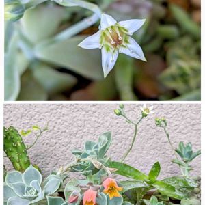 おはようございます。 玄関の多肉寄植え💚🟢💚小さなお花咲きました。💕