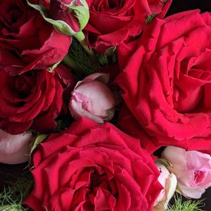 おはようございます。 真っ赤な火曜日🎶🎵💕 先日のアレンジ 薔薇だけまだまだ綺麗なので手直し〜もう少し楽しめそう🌹🌹🌹(*˘︶˘*).。*♡