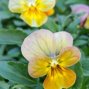 おはようございます😊 今日は朝から曇天☁️ この爽やかな色合いのビオラを見てたら気分スッキリ✌️