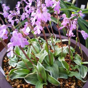 有名な斑入りオキナワチドリ「沖の輪」です。 毎年この時期に可愛い花を咲かせてくれます。