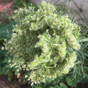 食べた残りの3センチの切れ端を植えて少しだけ 葉を採れたらなとの思いだったのに 種が採れそうです。 オレンジの人参は🥕 こんなレースのような、花火のような花を20個近くつけてるんですよー🥕