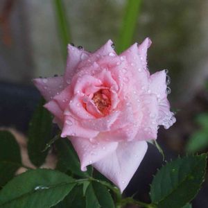 今朝、傘を差して庭のミニ薔薇が咲いたので撮りました 東海地方に台風上陸予報です 気をつけて下さいね