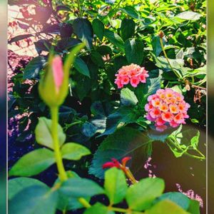 おはようございます 今日は雨マークがちょっぴり付いた曇だとか、朝も少しだけ過ごし易いです\(^o^)/ 蕾をつけたピンクフレンチレースとランタナ