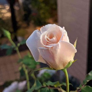 お花からパワーもらいに 庭パトロール~ 一輪🌹咲いてました☺ #フレンチレース 10年以上の古木になってる 鉢植えの薔薇🌹 お手入れしないのに咲いてくれて感謝です😂 春はクリームオフホワイト色が咲きます❤😃 実家の近所に咲いてた薔薇と同じ香りがします✨ 嗅ぐと幼い頃や故郷のことが甦る、香りの記憶😂😂
