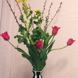 だんだん少しずつ春めいてきましたよね。春のプチアレンジです。