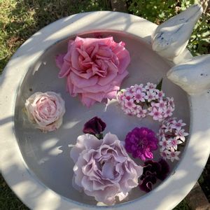 咲き進んだバラを✂️したので、花手水にしました🌸🌼🌹 リベルラのヒラヒラが可愛いなぁ💕 少し風が冷たくなって、短い秋が終わろうとしています🍂🍁 温かくして 🏷️ニコニコ日曜日 をお過ごしください(⁎˃ᴗ˂⁎) 。.ꕤ‿‿‿‿‿‿‿‿‿‿‿‿‿‿‿‿‿‿ꕤ.。
