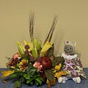 我が家では、明日がサンクスギビングのディナーでして。 先週は父ちゃんが出張中だったので、1週間遅れで娘が🦃にパイも作ると張り切っている💪 私はとてもじゃないけど、そんな面倒なことは😅 まず冷凍の丸ごとターキーを前日から解凍する➡️ スパイスとか色々擦りこむ➡️ オーブンで4〜5時間😅 その間にスタッフィングを作る。 昔はターキーの中にちゃんと詰めてオーブンに入れていたそうですが、さすがに面倒なので箱入りが売っていて別に作る。 ターキーにはグレイビーとかクランベリーソースでいただきますが、 グレイビーは粉末のパッケージとかクランベリーは、缶入りとかビン詰めがあるのでラク。 それでサンクスギビングのフラワーアレンジメントとうちのネコのお嬢さん🐈⬛💐 フラワーアレンジメントのクラスで作ったものは、全部はもたなかったけど、キクやカーネーションの一部や葉っぱは元気だったのでそれを使いました。あと週末に娘がパーティに持って行ったアレンジメントの余った花も加えて、スーパーで買ったお手頃な値段のユリをプラス。 それでも隙間が目立つところは、フェイクの花やアイビーなんかを入れて見ました。 最近のフェイクって、昔に比べてほんと良くできてますよね😄