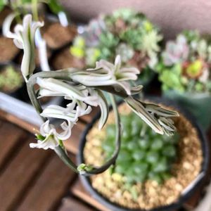 ●ススキノキ科 ツルボラン亜科 ●ハオルチア属 ●白雪絵巻hyb😻😻 去年は花芽を出さなかったのが、今年は早々と出てきました。😁😆 根がしっかり張ってきたのかも知れませんね。🤭😋🤓