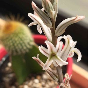玉扇の花が咲きはじめました。 ほかのハオルチアと交配してみたいのですが、タイミングが合わず同時に咲いているのがいないです😢