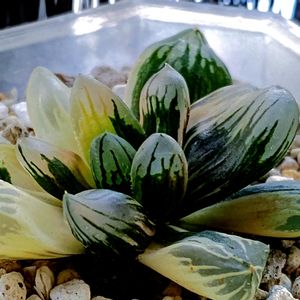 ●ススキノキ科 ツルボラン亜科 ●ハオルチア属 ●スタイネリー錦✕オブツーサNS3/7😻😻 子株が、何となく成長してる気がするな…🤔😆