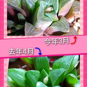 ✨ハオルチア 名無し 1年前は緑色🟢だったのに‥ ストレスなのね😨 去年は花芽が上がって来たのに‥咲くのをやめた😵 今年は咲いて欲しいです🩷💕😍🎶⤴️ 2枚目‥いつもの公園の花桃の蕾が膨らんで来ました🥰🌼