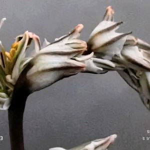●ススキノキ科 ツルボラン亜科 ●ハオルチア属 ●裏般若実生😻😻 おはようございます!🥱🥱😅🥱 何か気が付いたんだけど、このハオの花…🤔 ☝️😅咲き方おかしくない? 花びら?が裂けた感じで開花してるんです…🤔🤔🤔😱🤔 雄蕊と雌蕊が開花と共に剥き出しの状態になってる…🤣🤣 こんな咲き方初めて見ました… ハオの八重咲き的な…🤔🤣🤣(笑) さてと…今日もまた仕事頑張らないと…😩