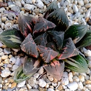 ●ススキノキ科 ツルボラン亜科 ●ハオルチア属 ●ブラックオブツーサ錦交配種 糊斑😻😻 毎月24日は錦の日。😍🥰😋 おはようございます。🥱🥱🥱🥱 今月も変わらず赤いです。😋😍😻 黒い葉以外は、ほぼ糊斑ですね。☝️🤓綺麗な株です。 やっぱ赤は良いですね~😋😆🤭 子株出てこんかな。(笑)😁