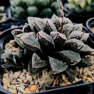 ●ススキノキ科 ツルボラン亜科 ●ハオルチア属 ●ブラックオブツーサ錦×白蛇伝😻😻 毎月24日は錦の日。😍🥰😋 この子は、今月初め頃にお迎えしてましたが、忙しくて撮影出来てなかった子です。☝️😅 面白い交配だなと思います。 なかなか見ない交配種なので、これからどう成長するかな…🤔🤔🤔🤔