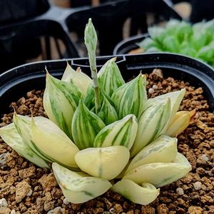 ●ススキノキ科 ツルボラン亜科 ●ハオルチア属 ●ブラックオブツーサ錦😻😻 おはようございます。🥱🥱🥱🥱 2つの子株からも花芽が出とる…😅😅🤣(笑) 何か以前も書きましたが、左の子株に錦の色が入ってきた感じがしますね。☝️😁🤤 もう少し子株成長させたいな。 我慢我慢…。😅😅😄