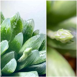 小さな花芽が出てきました😊🎶 お迎えして何年経ったか忘れるくらい 枯れる事なく我が家にいたハオルチア🪴 昨年株分けしたのが良かったのか 初めて花芽をつけました😁