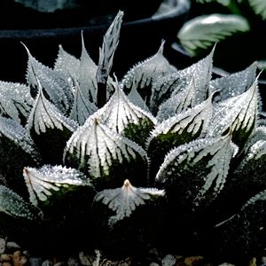●ススキノキ科 ツルボラン亜科 ●ハオルチア属 ●白帝城😻😻 『毎月8日、9日は白帝城の日』☝️😆 ✌️😃二株目はこちら。 一株目とサイズ感は同じくらいかな。🤔🤔 こちらも白い葉になっていて、今の季節にピッタリな感じです。☝️🤓良く見ると、二株共花芽が顔を出してきてました。