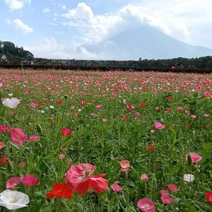 今日のお花 ヒナゲシ 1⃣ 一昨年の7月 花の都公園のシャーレーポピーの群生 後ろに富士山が見えます。 2⃣ オニゲシ 今年5月花の都公園に咲いてました。
