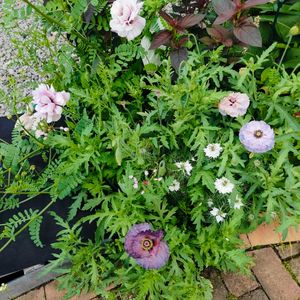 我が家のポピーたちが一斉に開花 こぼれ種から伸びた子が多いので 色や形が出てこなければわからないw これはアメージンググレーと八重咲きの中間風